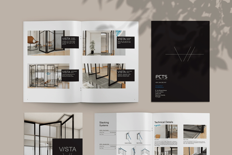 Como designer freelancer para a PCTS, desenvolvi do zero um catálogo de produtos alinhado com a identidade visual dos materiais anteriores da empresa, como folders e brochuras. O produto em destaque possui quatro variações e é utilizado em projetos ao redor do mundo. O catálogo foi projetado para apresentar as informações de forma clara, visualmente atrativa e coerente com a comunicação já estabelecida pela marca.